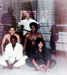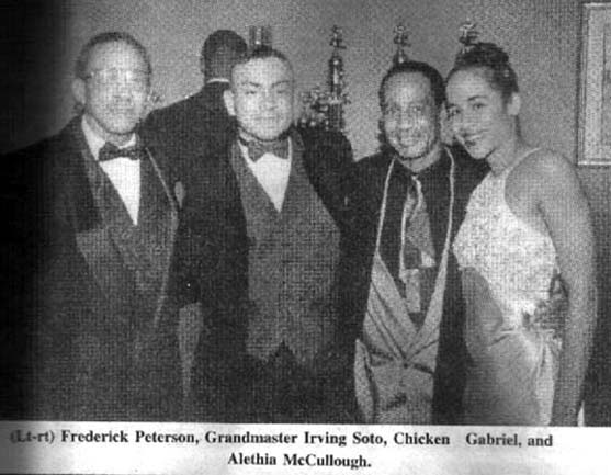 (Lt-Rt) Sensei Scooter, Master Canty, Grandmaster Soto--East Coast Champion, the late Grandmaster Charlie Sparrow, Sifu Lebron. This picture was taken during the celebration of Grandmaster Soto winning the East Coast Jujitsu Championship.