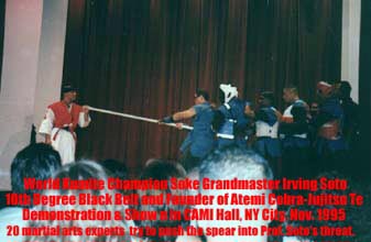 There were 18 men unable to move Soke Dr. Grandmaster Soto, with a spear to his throat.