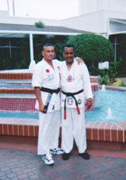 Soke Grandmaster John Denora and 8-Time World Kumite Champion Soke Grandmaster Soto at the Florida Hall of Fame World Soke Council. (1998) |