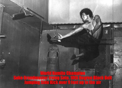 Soke Grandmaster Soto seen here jumping up 9 feet in the air, over the head of a Korean master. |