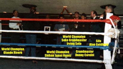 (Lt.-Rt) World Champion Olando Rivera, World Champion Shihan Jonas Nunez, World Champion Soke Dr. Grandmaster Irving Soto, Grandmaster Donny Carolei, and Sifu Alan Goldberg
